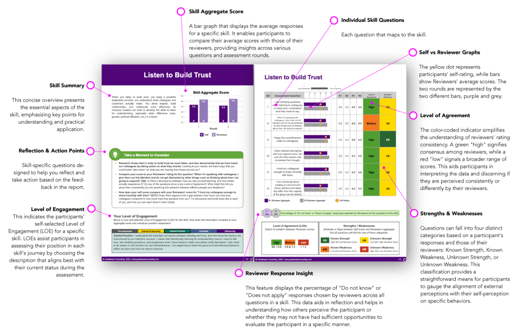 - A Robust Assessment Tool: The successful creation of a comprehensive multi-rater assessment tool that accurately measures key behaviors related to inclusive leadership in the workplace and provides valuable insights into leadership capabilities.